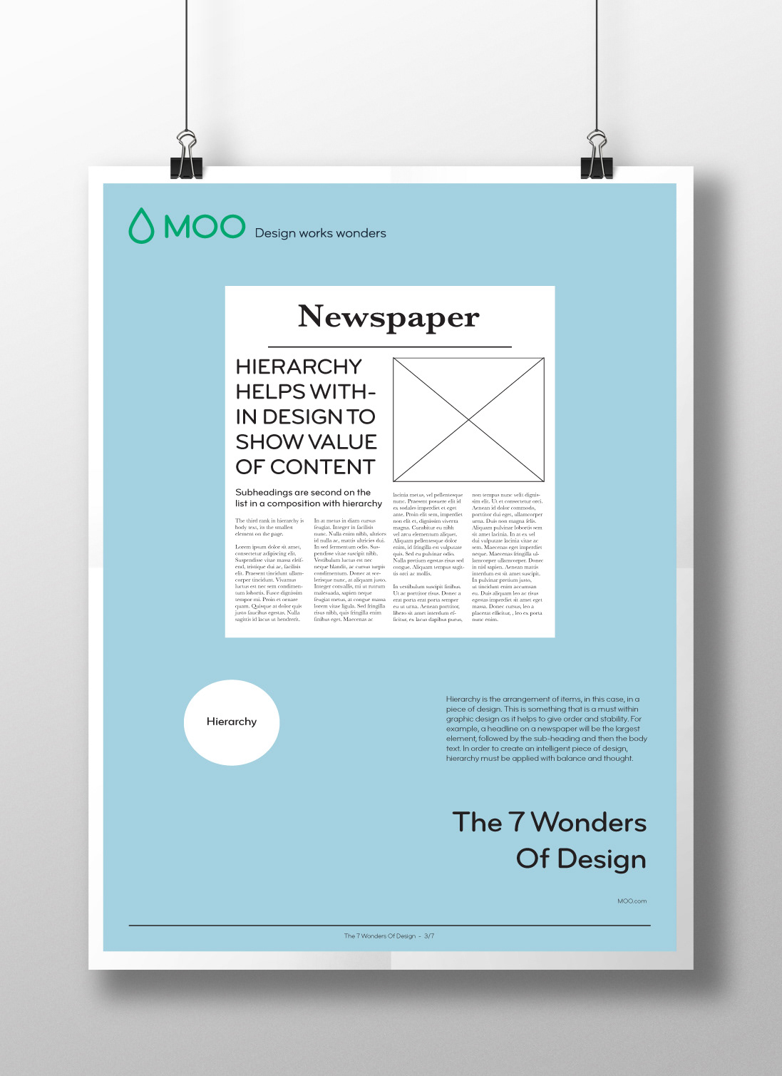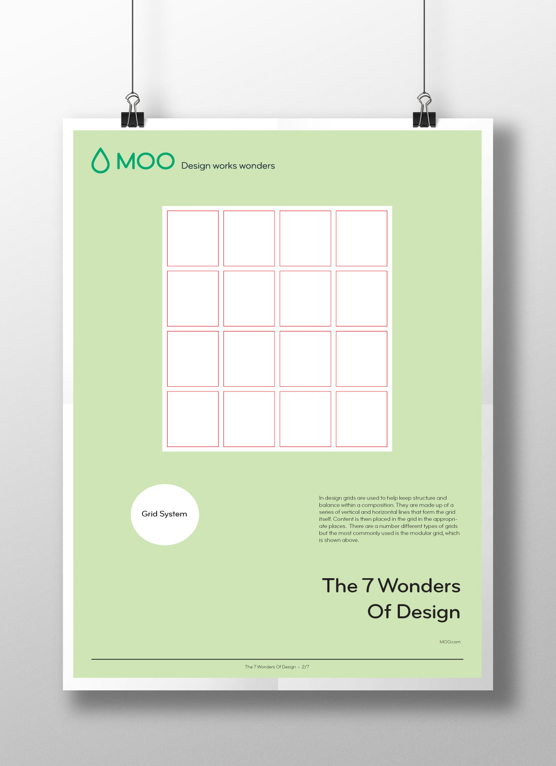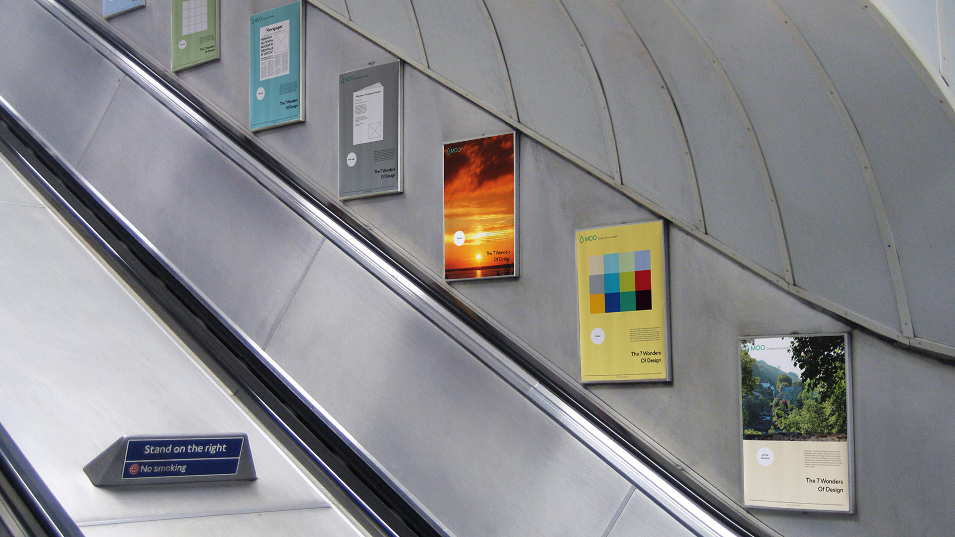 At the time of this project, MOO had just changed their tagline to ‘Design Works Wonders’, which is also their company's philosophy towards design. In order to raise awareness of this philosophy I was asked to create a visual representation of ‘Design Works Wonders’. This was the first project I had taken on in which I had to stick to brand guidelines. I produced a set of posters that included six of the most obvious, yet also most important components of graphic design and for the seventh poster, I put the six elements together to form one poster. The reason I chose seven posters in which to fill this brief was a play on the '7 wonders of the world'.